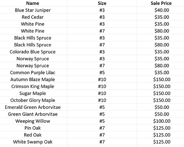As trees become available, we post many of them for sale on our Facebook page as well as Facebook marketplace. If you have any questions about current availability, prices, or any promotions that might be going on don't hesitate to reach out to Shawn. You can email him at Shawn@WoodwardAcres.com